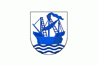 Helsingør is a city and a seat of the namesake Kommune at the northeastern tip of Zealand. There is a city flag on sale. The flag is white with centred arms as follows: Shield are Argent an ancient ship Azure on waves of the same issuant from base.