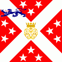 The sheet was red parted by a white saltire. Each quarter was charged with three white 5-point stars ordered 1:2 from centre.