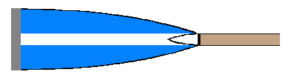 The blade is blue parted by a white horizontal stripe.