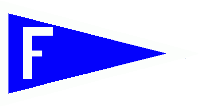 The pennant is blue fimbriated white. Shifted to hoist is a white "F".