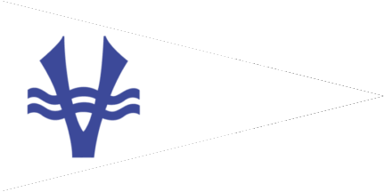 The pennant is white, shifted to hoist are two blue waves superimposed by a stylised initial "V".
