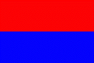Flag: Rectangular panel [...], whose length is 1.5 time the height, made of two horizontal stripes of equal dimensions. The first (or upper) stripe, red, the second (or lower) stripe, blue.