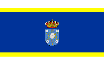 Flag: Rectangular, in proportions 11 x 18, with five parallel stripes perpendicular to the hoist, the first and the fifth, white, of 1/8 of the flag's width, the second and the fourth, yellow, of 1/16, and the third, or central, blue, of 5/8. Charged in the center with the coat of arms of the place.