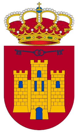 Description: “On a red field, a gold castle, crenellated and with a three-towered keep, masoned in black and with blue windows. Surmounted by two steel keys intertwined at their ends, with paddles facing outwards. Crested with the closed Spanish royal crown.”