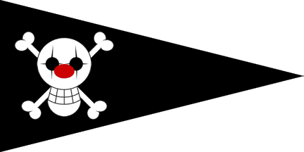 His flag shows a stylized red swordfish over saltire of crossed bones.