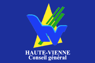 The former General Council used until 2014 a blue flag with a slightly different logo - which was modernized in 2015 when General Councils were renamed to Departmental Councils - and the white wording "conseil / général / HAUTE-VIENNE" (photo, photo).