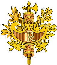 Pennant in the national colors with a golden fringe (and braids of 3 cm), with in its white part the emblem of a lictor's fasces of the president of the Republic (25 cm high), embroidered in gold and with a golden fringe of 3 cm [not sure about this last part, the French word here is galon, not frange. I don't know why, maybe it is a specific word used in the military].