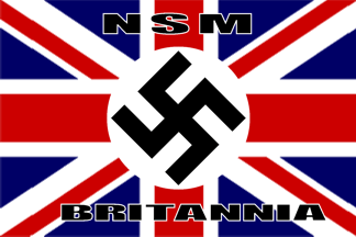 so far; only two images can be found. The images include the abbreviation NSM (the first image) or NSM88 (the second image) above the disc with the swastika and the word BRITANNIA (both images) beneath the disc. Considering that they don't have a uniform look, it still remains to be verified if this is more than just a flagoid.