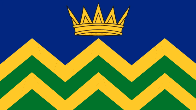 The Cumbria County Council has been strangely silent on which was the Cumbria Flag or the Cumbria Council Flag but has allowed the de-facto use of commercial variants. This particular banner of arms was flown outside Eland House in 2010-2011 by the Ministry of Housing, Communities, and Local Government. It is based on the Arms of Cumberland. Because of the mix-up it is now also commercially sold as the Cumbria County flag.