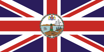 The colonial flag of Leeward Islands was used between 1871 and 1956 in the Caribbean. The badge was designed by Sir Benjamin Pine, the first Governor. His flag was the Union Jack with the badge on a disc surrounded by a garland of laurel. The flag was used until the dissolution of the Leeward Islands colony in 1956.