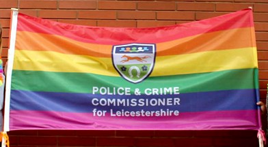 At first I wasn't sure if this was an election rainbow flag/banner for a "Police & Crime Commissioner for Leicestershire" but it turns out that the Leicestershire Police raised this rainbow flag to celebrate sexual and gender diversity. It was flown at the Leicestershire police headquarters to celebrate the "International Day Against Homophobia, Biphobia and Transphobia" or IDAHOBIT.