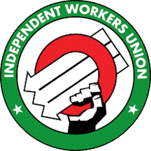 A red-field flag of the Independent Workers Union of Great Britain, with slogan "Putting Workers First"; seen 2019-2023: