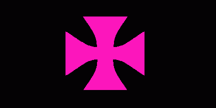 The flag is black, charged with a pink cross patty.