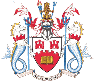 The coat of arms has four key elements; a shield, crest, motto and supporters. The shield is always the basis of a coat of arms and items that appear on the shield are known as charges. Northumbria's shield contains two triple-towered castles, representing the City of Newcastle upon Tyne, and an open book which represents learning. The arched line of battlements dividing the shield refers to the Roman Wall, a historic feature of Northumberland. Whilst the curve of the arch reflects the King George the Fifth Bridge over the River Tyne, more generally the bridge alludes to the University s role in the transmission of knowledge to, and strong links, with the society in which its located.