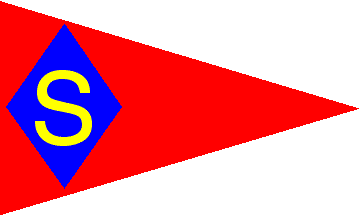 The burgee of SBSC is red with a blue diamond charged with a yellow S placed