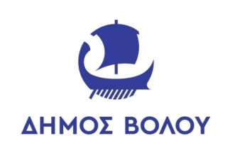 The flag of Volos (photo) is white with the municipal seal - a white disk containing a Greek boat - in brown and the words "ΔΗΜΟΣ ΒΟΛΟΥ" (Municipality of Volos) below.