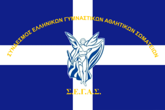The flag of the Hellenic Athletics Federation is blue with a white cross and the federation's emblem in the center.