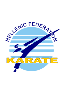 The flags of the Hellenic Karate Federation are white with the federation's emblem in the center.