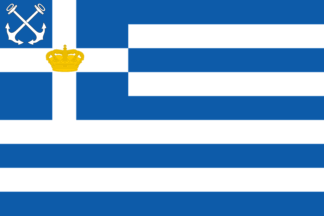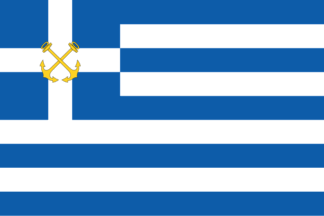 The flag of the Hellenic Coast Guard is similar to the Greek national flag, but with two yellow anchors crossed per saltire placed in the middle of the canton. The flag is shown on the Ministry of Mercantile Marine website; unfortunately there is no English counterpart of the Greek page, which seems to indicate that the flag was adopted on 21 March 1964. The flag photographied on the website has a golden fringe, not shown on the attached image.