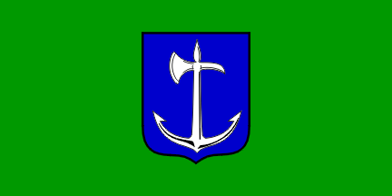 However, the inhabitants of Klana are not satisfied with that emblem since they live in highlands, away from the sea, and do not identify themselves with an anchor. In the last session of the Municipality Assembly, a new design was adopted in which the anchor was combined in top with a helberd. The Municipality hoped that the Commission for approval of the symbols of the Central Office for the State Administration would approve that design. They also decided that if the Commission did not approve it [which happened], they should go back to the previous suggestion to adopt a blue shield with a silver anchor only [which they eventually did]. In any case, they agreed for the flag to be green with the coat of arms in the middle.