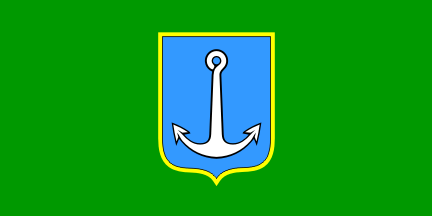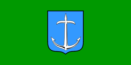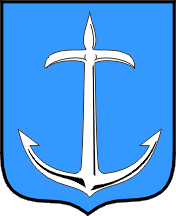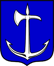 The Municipal assembly adopted at first a historical coat of arms that is preserved in the State Archives as a seal from the 19th century. The seal shows a shield with an anchor, crowned and supported by a lion and a griffin. The design was adopted in 1996 but in 1997 the Ministry of Administration refused to approve it, as elements around the shield are not allowed, and suggested a shield with an anchor only.