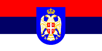 A flag featuring in the middle a white shield charged with the two swords surmounted by the Serbian coat of arms was also reported as a possible war flag.