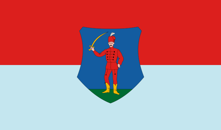 The flag of the town is divided into two horizontal (or vertical) stripes, which are red and light blue.