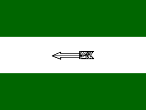 shows the party flag as horizontally divided dark green-white-dark green with a