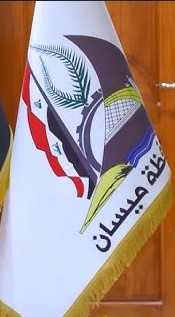 image by Daniel Rentería, 6 July 2025The logo of Maysan Governorate depicts a tall Iraqi national flag to the left; a sail for sailboats over the Tigris River, which carries a bridge and its supports to symbolize transport. In the center, half of a cogwheel appears for industry. Above this are two palm leaves for the palm industry, with regards to date palms. At the bottom is half of an open book for education, and to its right waves under the bridge. Under all of this is Maysan Governorate in Arabic.
