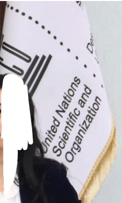 This flag was adopted sometime in 2020 and remained in use until around the end of 2022. It depicts, on a white field, a merger of the UNESCO logo in black (including its full name in Arial underneath) and Slemani governorate logos (with the text Designated UNESCO Creative City in 2019 underneath). Both logos are divided by black dots.