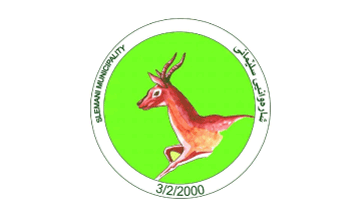 The logo depicts a white outer ring outlined entirely in green. There is text to the upper-left that reads "SLEMANI MUNICIPALITY" and text to the upper-right reading the same in Arabic. At the bottom is "3/2/2000", probably indicating the date of municipalization as 3 February 2000. In the center is a bright green field, depicting over it a deer indicating its fauna.