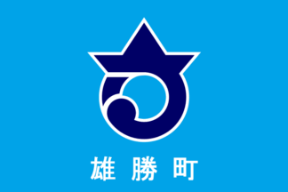 The flag of the former town of Ogatsu was blue with mark. The town is now,