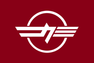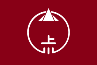 The flag of the former village of Kamikawa was maroon with mark. The village is now, from 2005, part of the town of Aga.