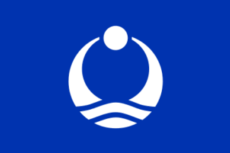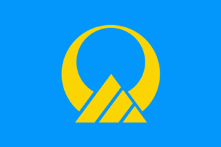 The town emblem was adopted on Apr 1st 2005 by Notice No 1 but there is no flag law. The blue flag has a white town emblem in the center. The emblem depicts Agano River and a rich green nature. It represents an image of the city which supports a shining town and a bright culture.