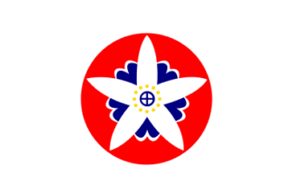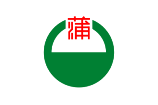 The flag of the former town of Kanbara was white with mark. The town is now,