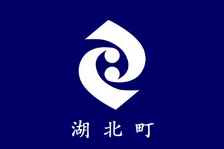 The flag of the former town of Kohoku was blue with mark. The town is now, from 2010 part of the city of Nagahama.