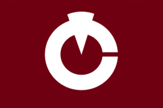The town emblem was adopted on Dec 1st 1951 but there is no flag law. The maroon flag has a white town emblem in the center. The town emblem is a stylized hiragana と To of Togitsu. The circle symbolizes Omura Bay, the point of the triangle does The town location closed-off section of the bay.