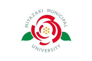 The emblem is based on the symbolic flower "camellia," which is the flowering tree of Miyazaki City, and is composed of dynamic lines and figures, creating an image of an attractive university, a unique university, and a university that is open to the community. The seven petals of the "Camellia" represent Camellia, Communication, Culture, Creation, Community, Cosmos, and Cooperation. The flower core represents one city and six towns (Miyazaki City, Kiyotake Town, Tano Town, Sadohara Town, Takaoka Town, Kunitomi Town, and Aya Town at that time) that comprised the Miyazaki Public University Administrative Association at the time of the university's opening, and the dynamic movement spreading in all directions from the flower core represents internationality, information, youthfulness, and freshness.