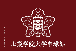 Table tennis club; The club flag has maroon background with a white university emblem and horizontally written kanji university and club name in white.