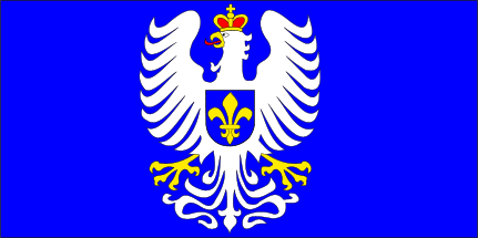 on the eagle's breast a blue shield with a golden fleur-de-lys.