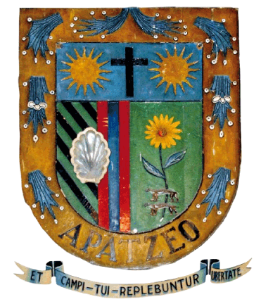 Under the coat of arms and over a ribbon of naturally colored parchment, the motto in Latin tongue is written in sable letters: "ET CAMPI TUI REPLEBUNTUR UBERTATE" which is taken from Psalms No. 64, verse 12, and which signifies in Spanish [English] tongue "And your fields shall be filled with abundance", which are the blessings Apasenses expect from the creator for their activities.