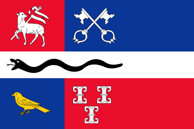 white columns, placed 2 and 1. New flag consists of the various heraldic