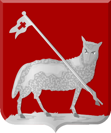 division line, a white Lamb of God looking back with a white banner bearing a