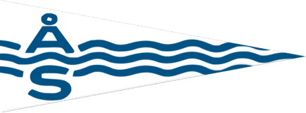 The flag of Ålesunds Seilforening from Ålesund is a white pennant with three wavy blue lines across the middle, the upper and lower waves interrupted by the letters Å and S.