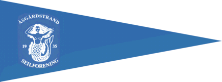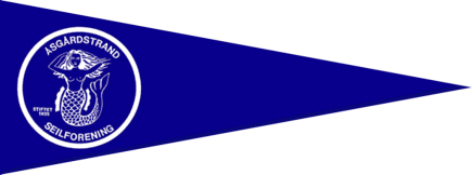 The flags of Åsgårdstrand Seilforening from Åsgårdstrand in Horten Municipality are blue or white pennants with the badge.