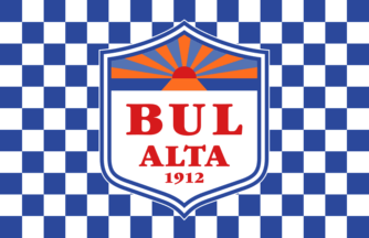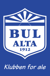 The flags of Bossekop UL (Bossekop Ungdomslag) from Alta are blue or chequered blue and white with the badge centered.