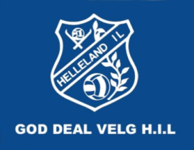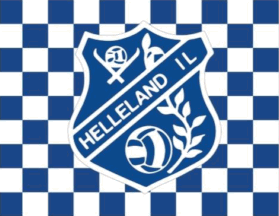 The flag of Helleland IL (Helleland Idrettslag) from Helleland in Eigersund Municipality is blue or chequered blue/white with the badge centered.