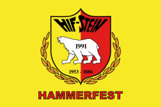 The flag of Hammerfest IF Stein or HIF-Stein (Hammerfest Idrettsforening Stein) from Hammerfest is yellow with the badge centered.