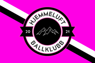 The flags of Hjemmeluft BK (Hjemmeluft Ballklubb) from Alta are pink with the badge centered.