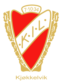 The flags of Kjøkkelvik IL (Kjøkkelvik Idrettslaget) from Bergen are red, white or red-white chequey with the badge centered.